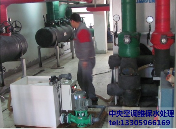 螺桿式冷水機冷凝器極易結垢,正常在夏季供冷期應該做日常水處理,否則在高硬度水質的環境下運行,循環水系統內溶于水中的無機鹽就會隨著溫度的升高結晶析出,在冷凝器換熱面管壁上形成水垢,導致熱交換效率降低。同時硬垢增加,則能耗上升,結硬質水垢1mm厚時會增加6%—8%。 ![]() 1、將冷卻水進出冷凝器的閥門關緊,利用溫度計管、壓力表管或排污管連接防腐泵、配液箱做成小循環系統,循環清洗。 2、先加入酸洗緩蝕劑,此藥劑為專用銅緩蝕劑,它附著在冷凝器金屬內壁上,防止酸和金屬發生反應。 3、加入固體酸洗清洗劑,用于清洗碳酸鈣垢為主要成份的水垢,清洗劑是復合固體有機酸,白色晶體,對金屬的無腐蝕性,為弱酸;清洗劑用量按設備結垢量而定。 4、加入泥垢剝離劑(可選),如果冷凝器設備結垢較厚時,需要添加泥垢剝離劑,促進水垢反應后的生成物快速溶于水,加快深層水垢反應。 5、加入中和鈍化劑,在冷凝器進行化學清洗后,中化殘酸,防止金屬表面氧化而生成二次浮銹。 6、清洗工藝 清洗溫度:一般采用常溫清洗,如果結垢較厚可以在40—50℃清洗以提高清洗速度。 將進出機組的閥門關上,利用壓力表或溫度計管、防腐泵、酸液箱連成清洗循環系統。清洗時先加入緩蝕劑,緩蝕劑循環均勻后緩慢加入有機酸,清洗中應定時檢測反應情況,清洗劑不足時需補足,以保證有足夠的酸液和水垢反應,清洗中按水垢反應情況,可加入適量泥垢剝離劑、消泡劑等。 清洗結束后,要將余液排出,并加入清水沖洗。 冷凝器清洗后還需要加入中和鈍化劑,中和殘酸,以防止金屬內壁氧化。 冷凝器清洗時間為5~10小時左右,按實際情況而定。 |